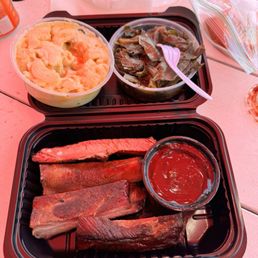 My Hommie found this spot. At first we thought it was closed, but if the sign says open it's open. Our order took a while. But let me tell you it's worth the Waite very good good bbq ribs the picture I posted is what I got the greens are bomb the broth there cooked in wow. got the spicy bbq sauce and I'm Mexican so I like hot and this bbq sauce doesn't disappoint. Definitely coming back with the family, to uncle Robert's bbq spot. Cause now we family.